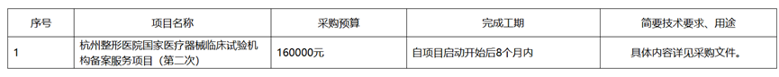 杭州整形醫(yī)院國家醫(yī)療器械臨床試驗(yàn)機(jī)構(gòu)備案服務(wù)項(xiàng)目(第二次)采購公告