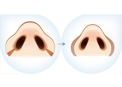 鼻翼缺損修復術(shù) 杭州整形醫(yī)院鼻翼缺損修復術(shù)通過縮減兩側(cè)鼻翼來矯正鼻翼缺損的方法。需