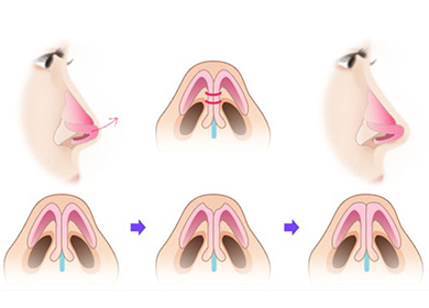 駝峰鼻矯正 其基本方式是鼻孔內(nèi)進路或鼻孔外進路的全鼻整形術(shù)的術(shù)式原則進行。手術(shù)