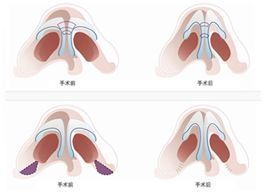 寬鼻整形術(shù) 寬鼻矯正手術(shù)包括鼻頭寬大和鼻梁寬大兩種類型;通常鼻頭寬大,需要行鼻